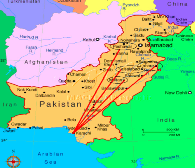 DISTANCE TO MAJOR CITIES VIA KARACHI |